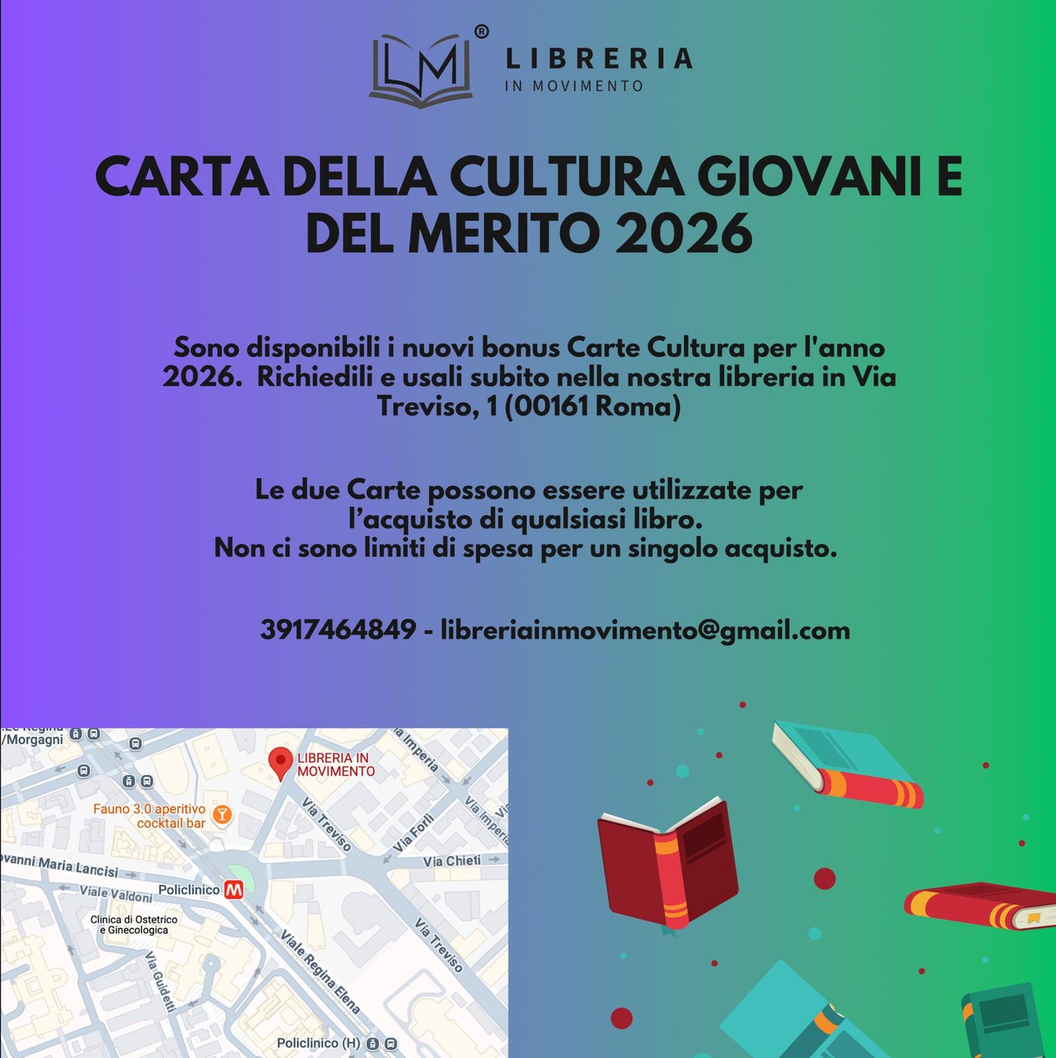 Hai tempo fino al 31 dicembre per poter usufruire della carta Cultura giovani e della Carta del merito, contattaci per saperne di più!